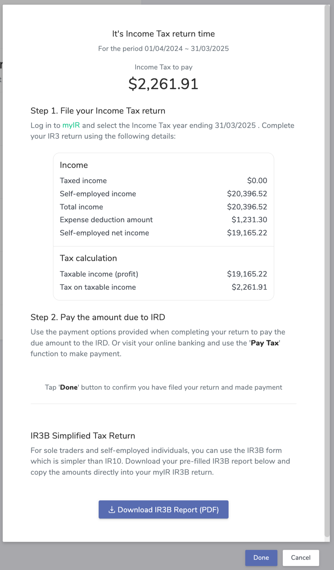 Q: Can I use this feature if I haven't used PayTax.NZ before? A: Yes, as long as you've correctly recorded your income and expenses in PayTax.NZ, you can use the IR3B download feature.